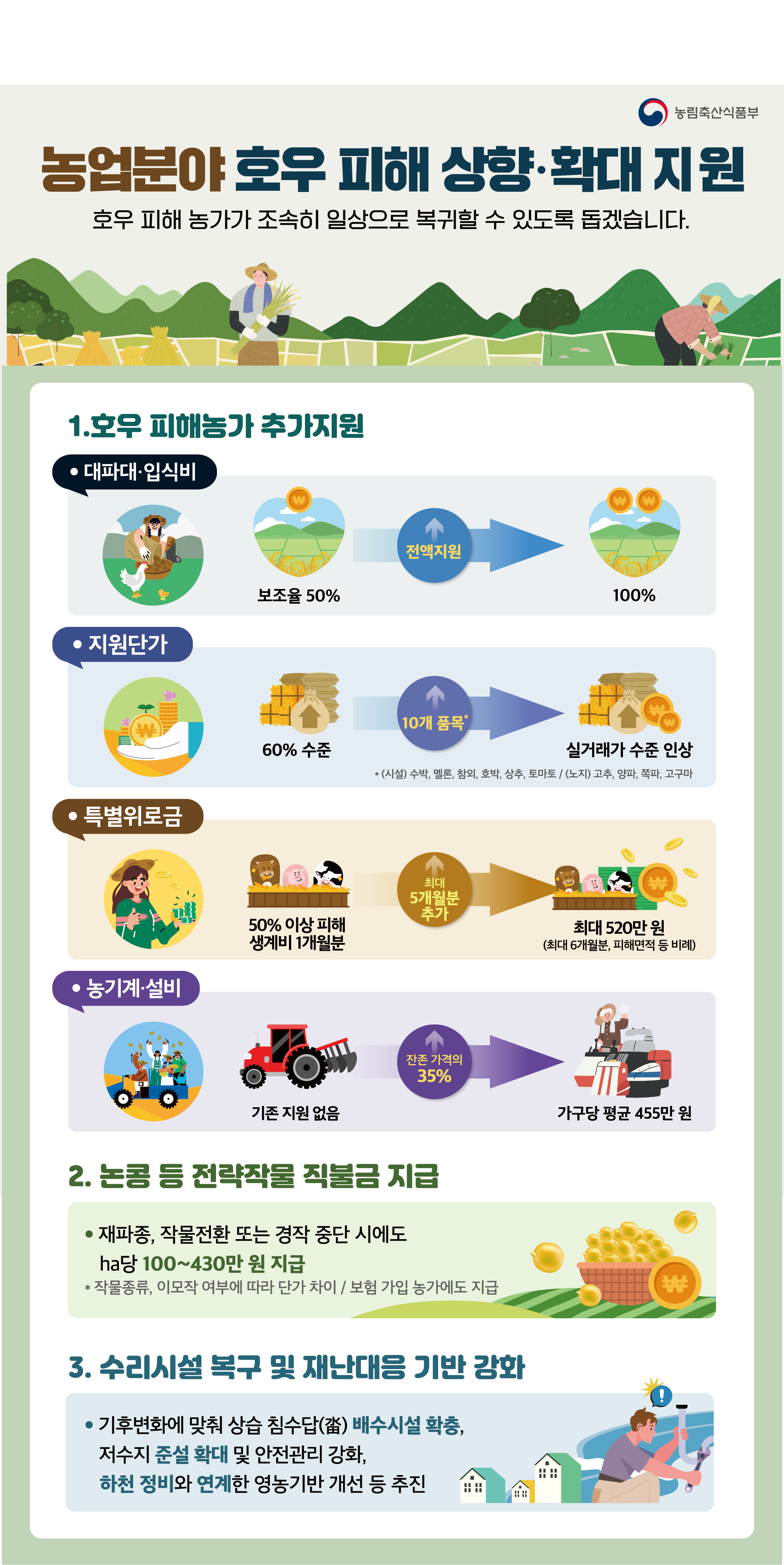 농업분야호우 피해 상향·확대 지원(인포그래픽)