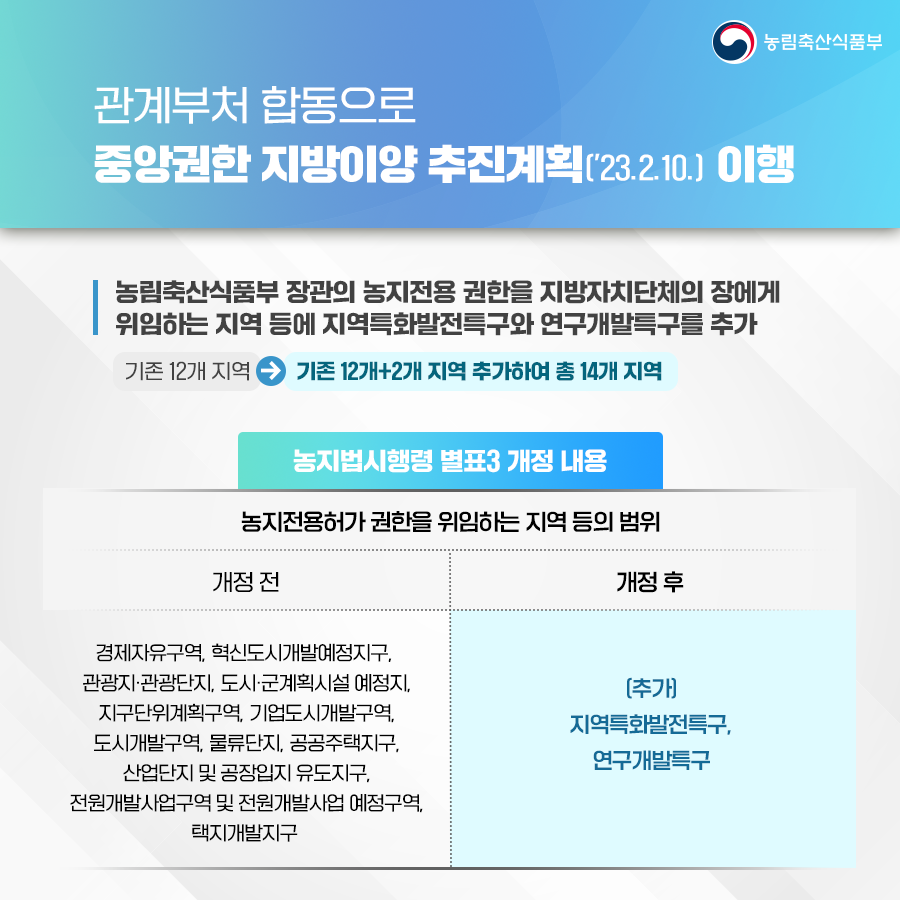 농지전용권한의 위임 확대(카드뉴스)