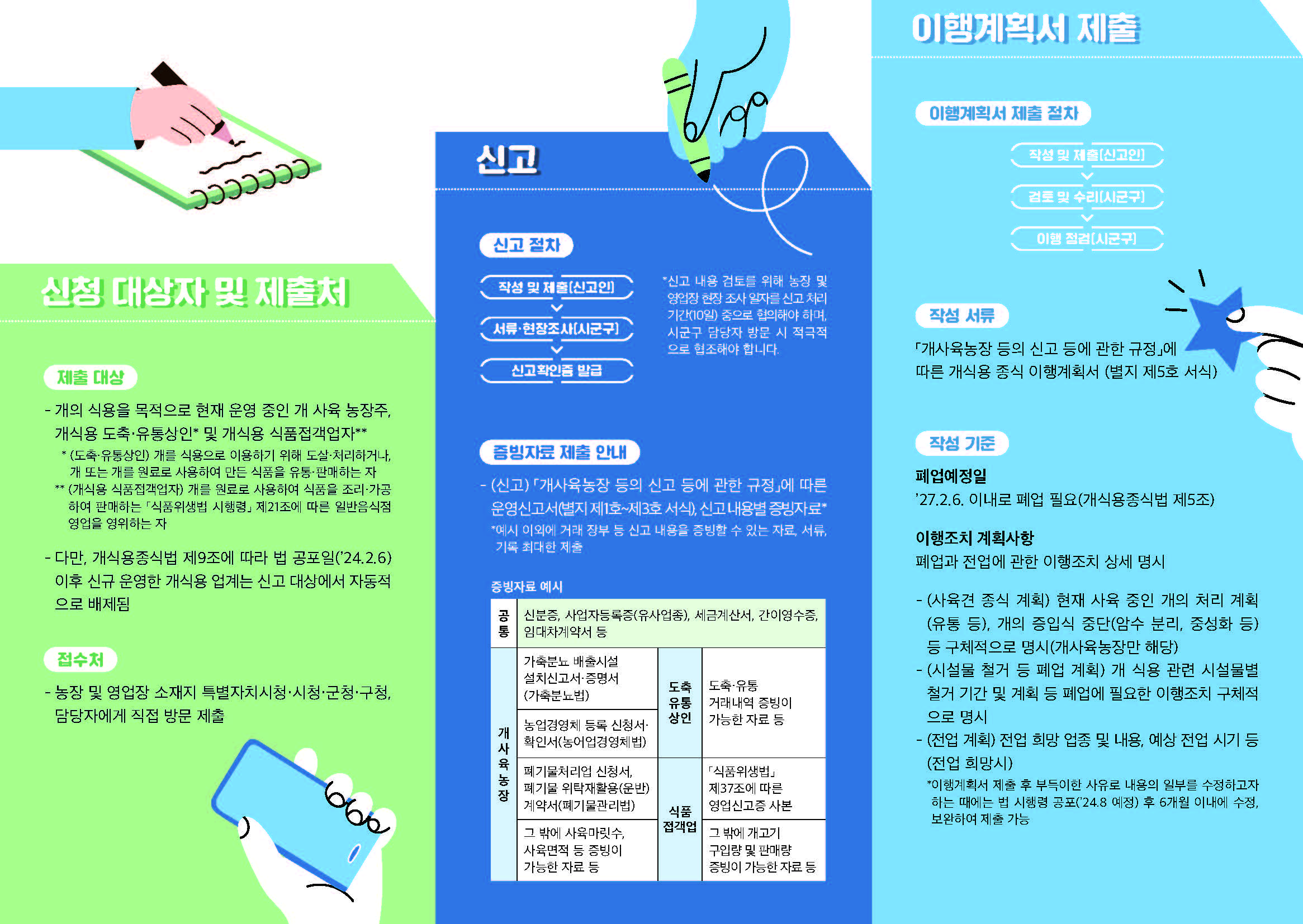 개식용종식법관련 운영 신고 및 이행계획서 제출(리플릿)