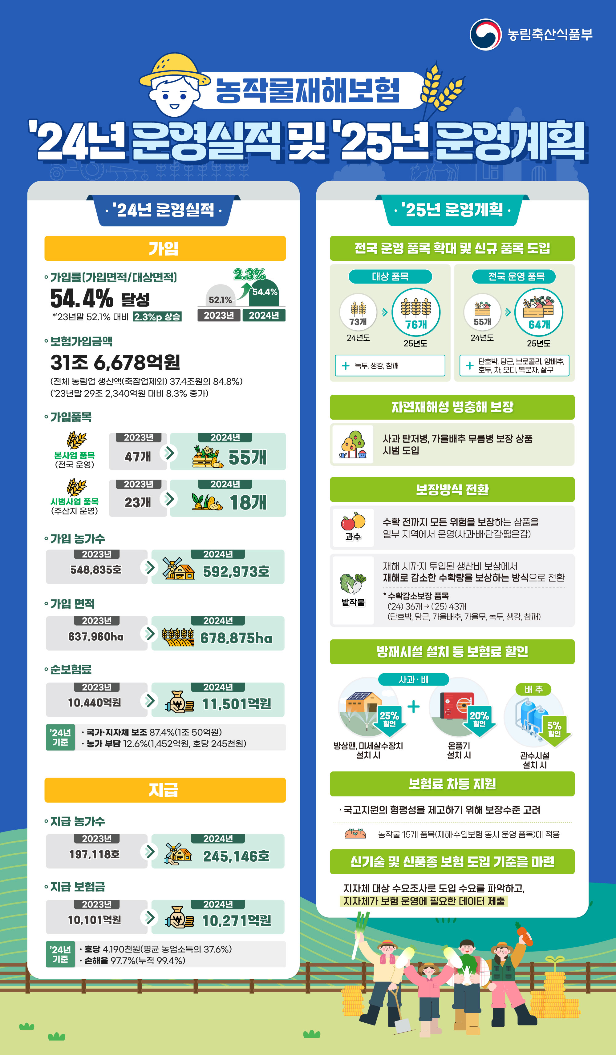 (인포그래픽) 2024년 농업보험 운영실적 및 2025년 농업보험 운영계획